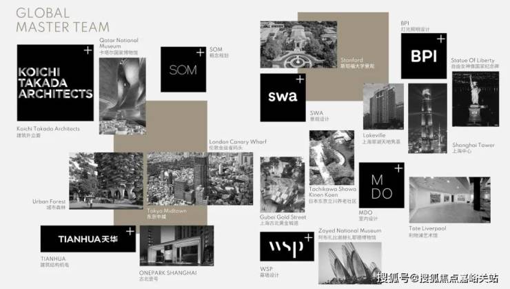 规划设计顾问 美国SOM建筑设计事务所,作品有迪拜的哈利法塔、上海金贸大厦等全球知名建筑;建筑立面设计由 澳大利亚KTA公司掌门人 高田浩一先生亲自担当设计;景观设计美国SWA,设计了美国谷歌总部、斯坦福大学景观,及古北黄金城道景观等;灯光设计公司——BPI,承担了自由女神像照明工程、上海中心等;