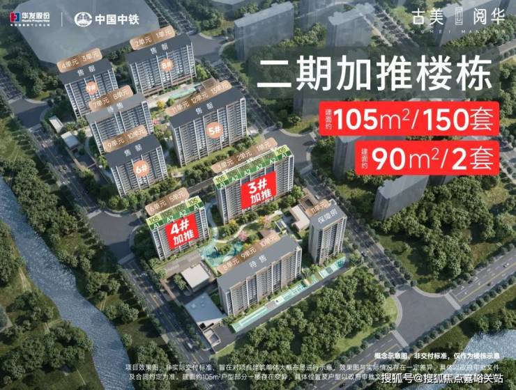中铁华发·古美阅华 二期预计将在本月热势加推3#楼与4#楼,共计152套,其中105㎡三房-150套,90㎡两房-2套,房地联动价8.58万元/㎡。