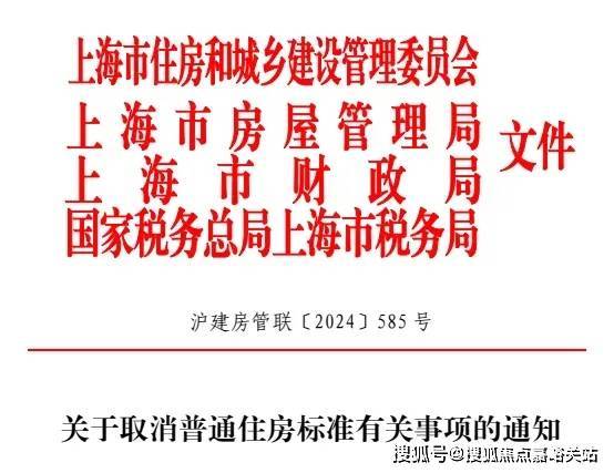 2024年11月18日,上海市住建委发布了《关于取消普通住房标准有关事项的通知》。