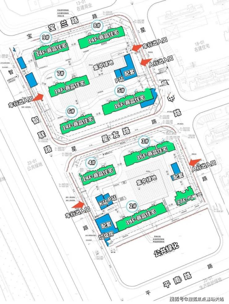 根据设计方案显示,地块拟建8栋14-16F高层住宅、1栋17F保障住宅以及若干配套用房,可售住宅约552套。