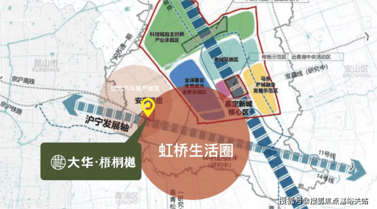 项目距离11号线上海汽车城站约2.4km,不算真正意义上的轨交房。轨交14号线横亘安亭境内的规划建议,也已提上日程。