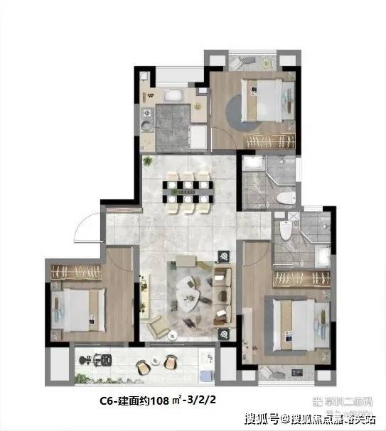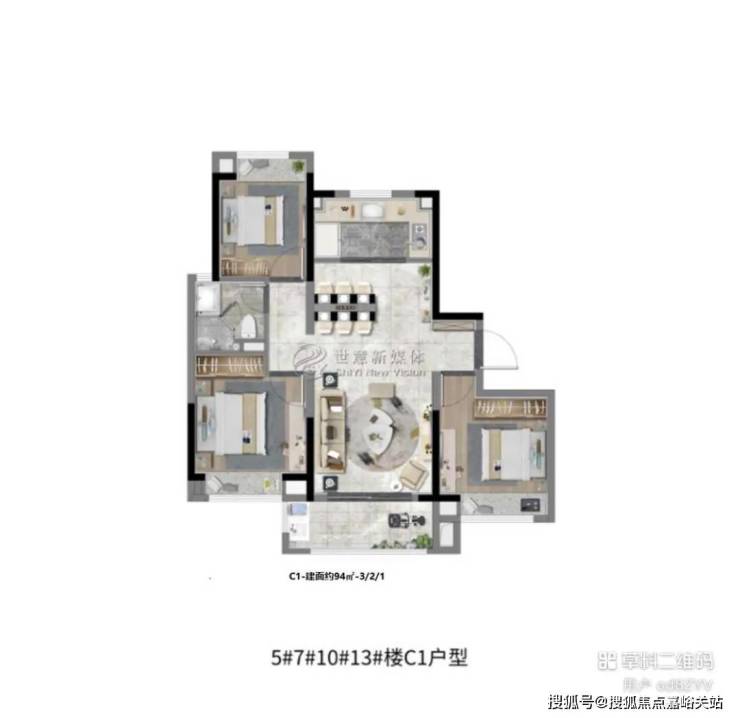 从 94㎡三房到 131㎡四房,精心设计,C5 户型 99㎡三房二厅二卫更是将空间利用推向新高度。