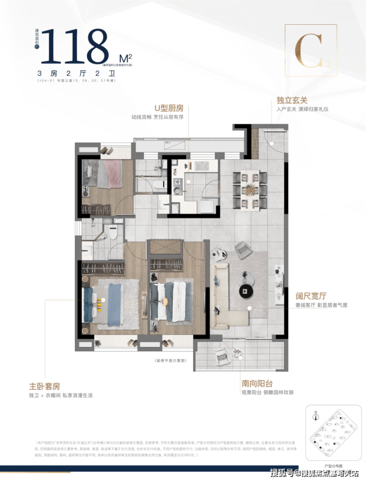 全三房两厅两卫的空间布局,功能完善,覆盖全生命周期的居住需求;
