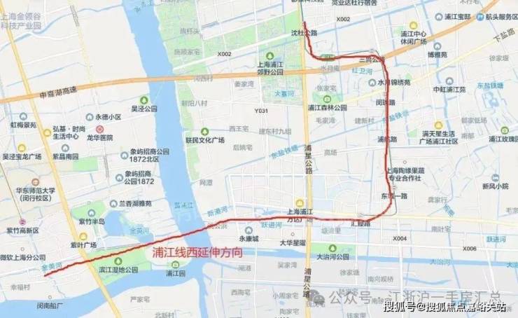 目前,关于浦江线西延伸线的走向研究,最主要的声音:自当前浦江线南端终点站汇臻路站向西,穿越黄浦江到江川路街道,与规划15号线南延伸线紫光路站实现换乘。