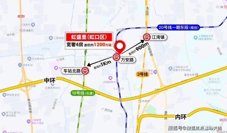 首先,虹盛里几乎可以看做是20号线万安路站(在建)的地铁上盖新房,几乎就是紧挨着的关系,下楼即地铁站。