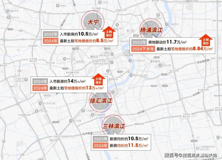 杨浦滨江的新宅地楼板价高达约88462元/㎡;