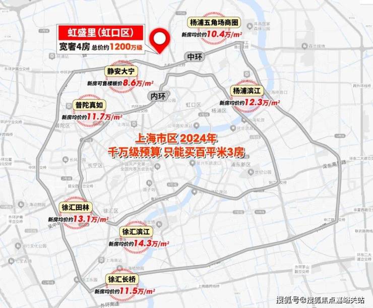 首先,传统的千万级置业区域,例如西藏北路、杨浦滨江以及普陀真如等区域,如今的新房均价早已突破了约12万+。