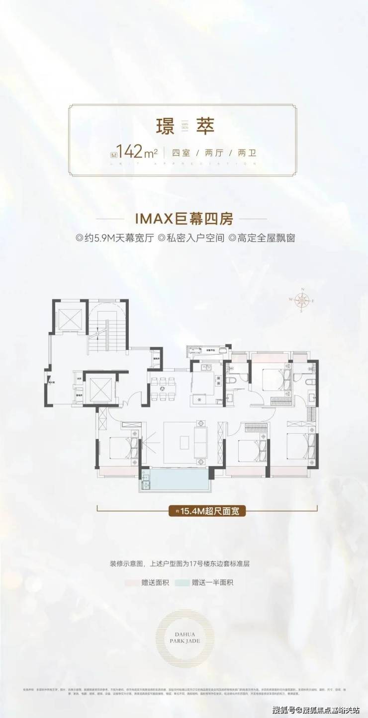 真正一步到位的改善型4房产品,大横厅的设计, 四开间朝南+大横厅,约15.4米的南向面宽堪比别墅。