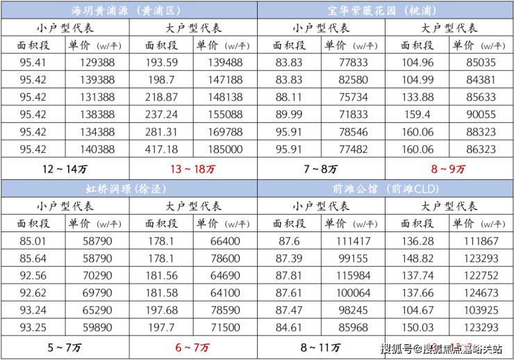 宝华紫薇花园和前滩公馆的大户型的定价上限基本都能比小户型每平高出1万的差价