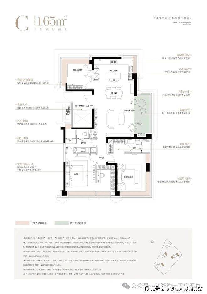 建面约 165㎡四房两厅两卫:改善主力,四开间朝南,主卧套房配独立卫浴 + 步入式衣帽间,宽绰客厅连接观景阳台,空间通透,适配多口之家。