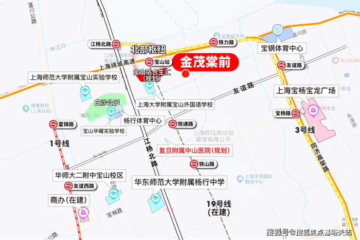 金茂棠前坐拥 高铁宝山站、合生汇 (在建)、 地铁19号线 (在建)三大热核, 超前的12平方公里,超级配套,超极城市运营 ……越级而来。