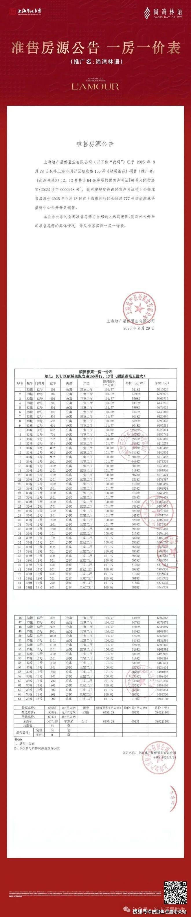 2022年9月23日,上海地产星侨置业有限公司以底价552183万元竞得闵行区颛桥镇生态隔带G9颛桥中心村段10-03、19-01、19-05、20-01地块(“城中村”改造项目-中心村),楼板价29760元/㎡, 房地联动价为62000元/㎡!