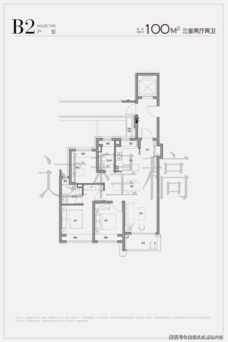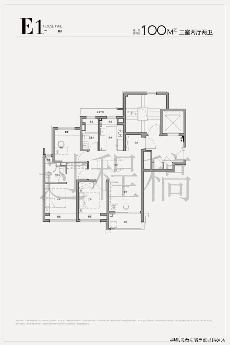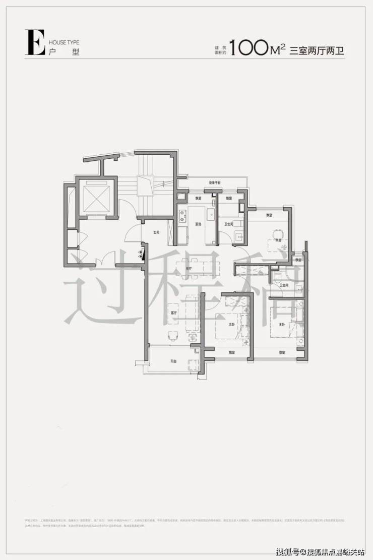100㎡户型,双270°飘窗设计(南向主卧+北向书房),南次卧、厨房、双卫飘窗,厨房烟道外移,飘窗配置抽屉,极致空间利用率。