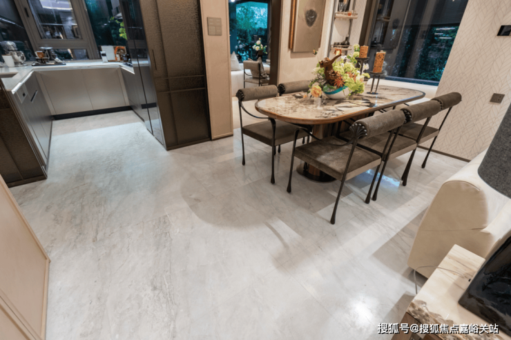 坚持只选择契合park77空间静奢气质的灵石,以亿万年天地、自然、时间润养的灵石,为空间无声注入静奢气韵;如:137㎡F户型,客厅电视背景墙「新芬迪白」奢石,底色纯白如玉,黑晶纹理蕴藏天地灵韵,尽显自然静奢;客餐厅「阿黛尔灰」大理石铺地,质地坚硬,低调内敛,每一寸独一无二的纹理,都藏着大地的呼吸。