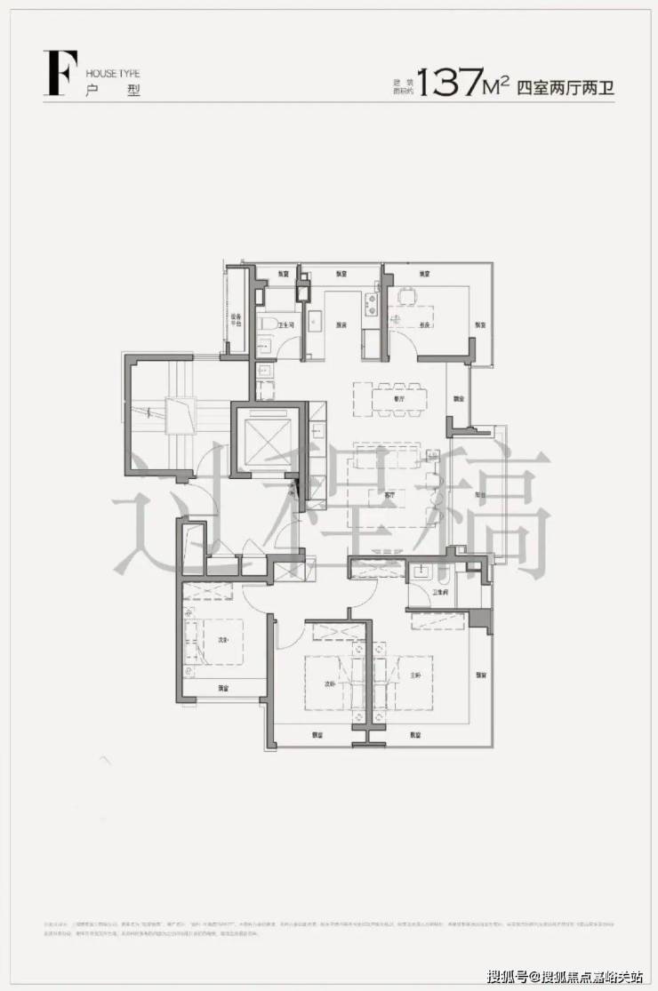 如:137㎡F户型,同样设计了双270°L型飘窗(南向主卧+北向书房)、南向双次卧飘窗、餐厅飘窗,甚至连卫生间和厨房都被飘窗环绕;厨房烟道外移设计,更形成 U型操作台面,增加操作空间,飘窗抽屉,增加收纳空间。