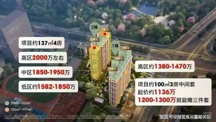 1、项目整盘均价约13.55w/㎡,但100㎡3房中间套均价只有13.2w,明显低于整盘均价,价格非常友好,比如1号楼中间套5楼以下价格才1300w,什么概念,就是你以中环的价格买进内环不说,还能城市景观,全内环内独一份的存在!