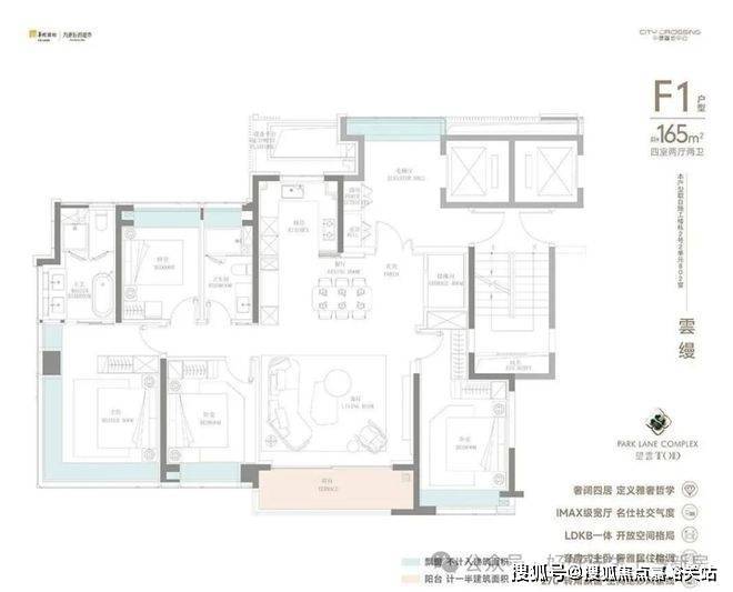 而建面约165㎡的"公园头排全景舱"更是项目的扛鼎之作,采用四开间朝南的极致布局,LDKB一体化+IMAX级宽厅的设计打破了传统空间界限。超大阳台、全屋飘窗带来了约270°环幕视野,将公园盛景尽收眼底。