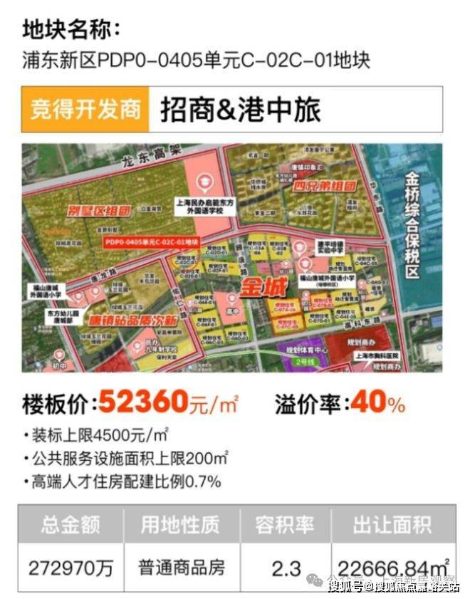 土拍重磅新闻——7月25日上海六批次土拍结束,唐镇地块再次赚足市场眼球!经过62轮鏖战,最终由招商&港中旅以总价27.3亿,楼面价5.24万元/m²夺得!溢价率突破40%!!!未来售价预计将突破9万/m²,已迎来价值爆发窗口期!