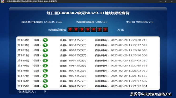 2025年2月,今年第一批次土拍中, 经过 184轮 竞价, 金茂&庆隆联合体 以总价896435万元竞得 虹口C080302单元hk329-11地块,溢价率38.2%,折合 楼板价117474元/㎡,装修标准不小于4000元/㎡。
