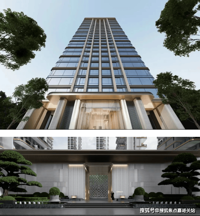建筑四面采用同等考究的材质和语言,主体采用 铝板+玻璃+陶 三种材质精工雕琢,这种东西南北全立面住宅在上海极其罕见