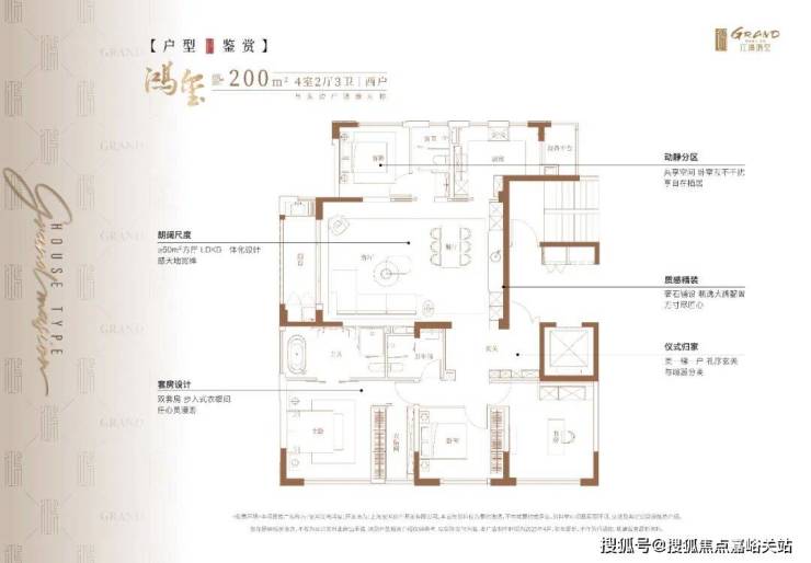 建面约200㎡4房2厅3卫户型,做到了 三开间朝南+主卧豪华套房设计+南北通透 ,保证每个家庭成员都能有自己独立的居住空间,私密性拉满。 ✅✅江湾鸿玺售楼处电话:400-889-4986 VIP 尊享热线✅✅