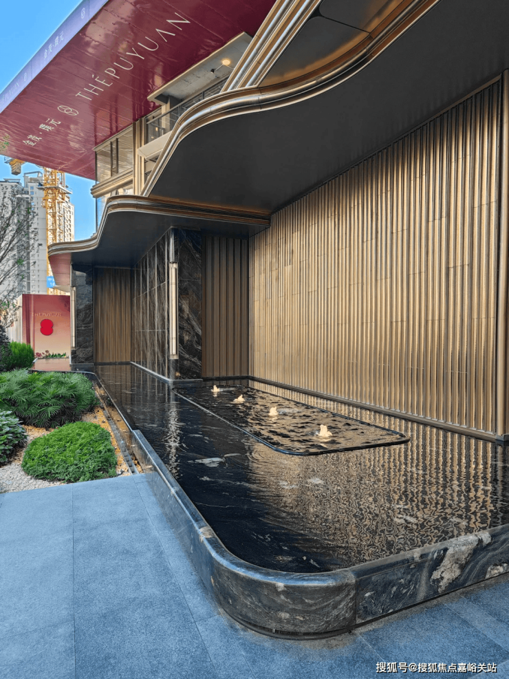 产品打造上,金茂璞元联袂国内外顶尖设计团队,以国际东方美学为基底,诸多设计堪称上海首创。建筑外立面采用金属釉陶板+铝板材质,实现上海前所未见的“无背面”设计,四面材质与工艺同等考究,成为内环内极具辨识度的艺术封面。社区整体抬高1.3-1.4米,营造“玉盘托珠”的视觉效果,既隔绝城市喧嚣,也让社区景观更具层次感。