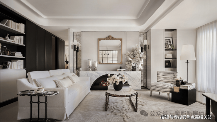 宽境阳台、客餐一体,全域贯通配合香奈儿高奢风,呈现超大尺度家庭公共空间;
