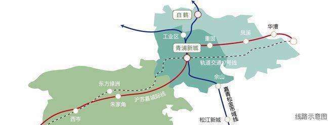 市域铁路:未来市域铁路嘉青松金线,将贯穿嘉定、青浦、松江和金山,届时白鹤将与青浦新城直接连通,并换乘轨交17号线和沪苏嘉城际线。