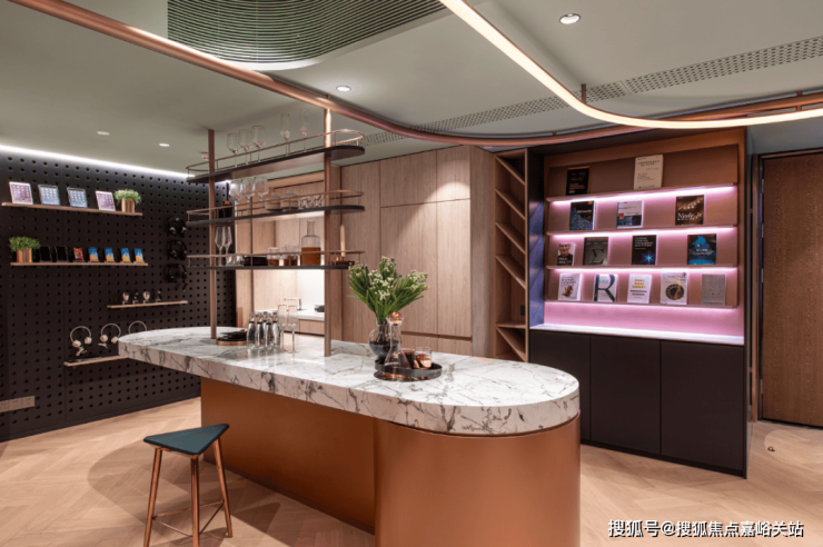 还有吧台、休闲洽谈区、共享会议和健身等功能区,是一个适合交友、会客、休憩、工作、读书、赏景的多功能空间.处处可见的时尚元素,符合当下年轻一代喜好。