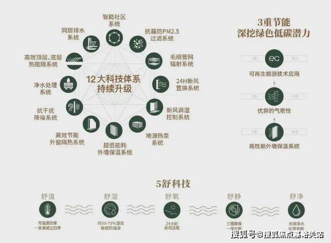 项目深度进阶12大科技系统、三重节能与五舒科技等技术核心,以更智慧化、定制化、生活化的品质空间,适配高净值客群追求品质的居住需求。