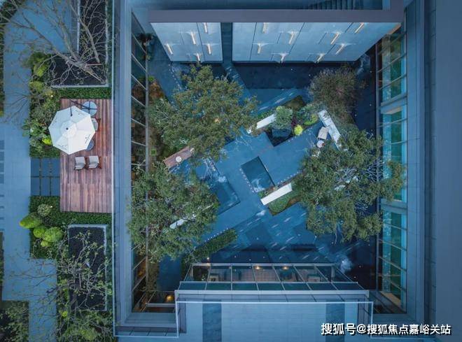 园林景观呈现得更加完整,参考江南民居“四水归堂”合围而成的庭院,勾勒出一幅动人的中国传统山水画卷。