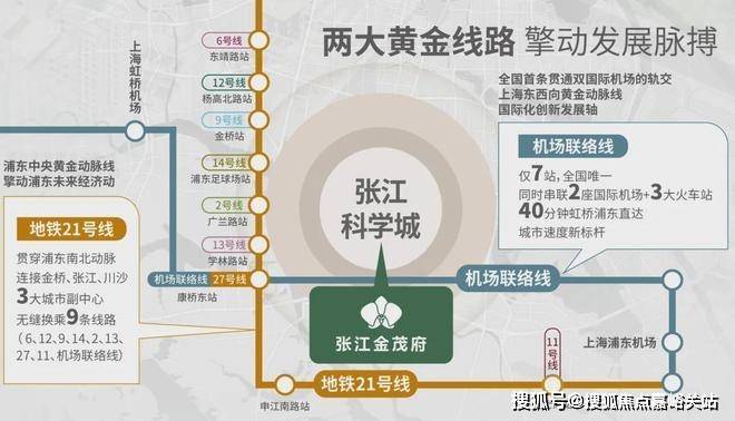 南北贯穿张江科学城的21号线(在建中),则进一步打通项目与张江的价值链条。