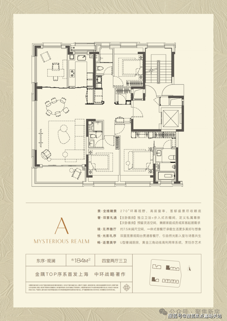约184㎡公园头排景观房,四房两厅三卫格局,LDKB一体化设计!