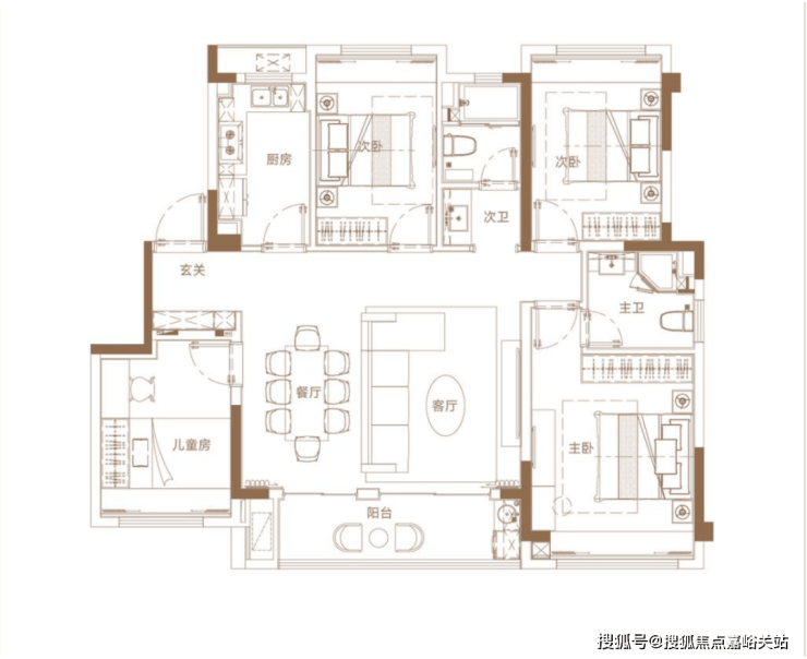 这个户型做到了 三开间朝南 , 全明通透 , 客餐厅一体化 ,家人在此舒畅交流。