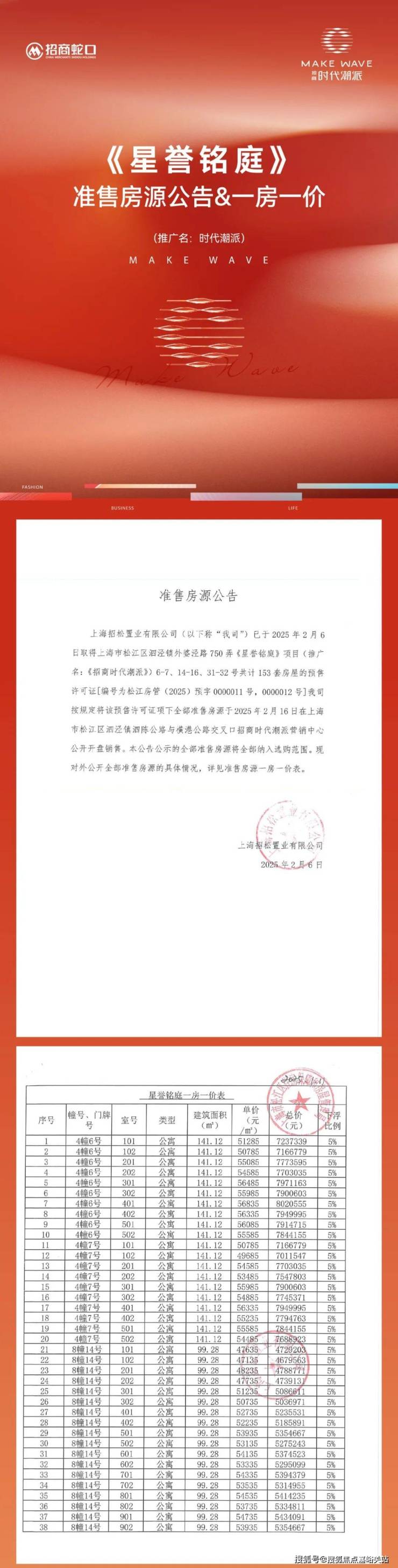 ▶ 均价51664元/㎡,泗泾北星誉铭庭(招商·时代潮派)136套房屋11月15日开盘,11月7日起认购(附一房一价表)