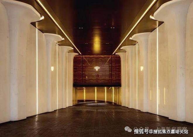 6、社区含“奢材”量很高。门庭延街的外立面,以精工定制弧形米色石材为主调,镶嵌典藏级老虎玉大理石,点缀古铜色现代海派艺术感灯器,整体呈现出百年海派的贵雅气质。