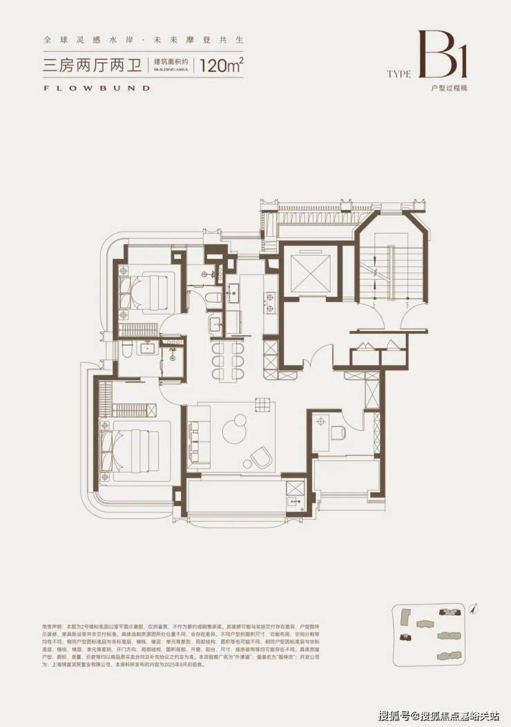 LDKB一体化,中西双厨房、餐厅、客厅外接弧形转角宽景大阳台, 空间尺度感拉满!
