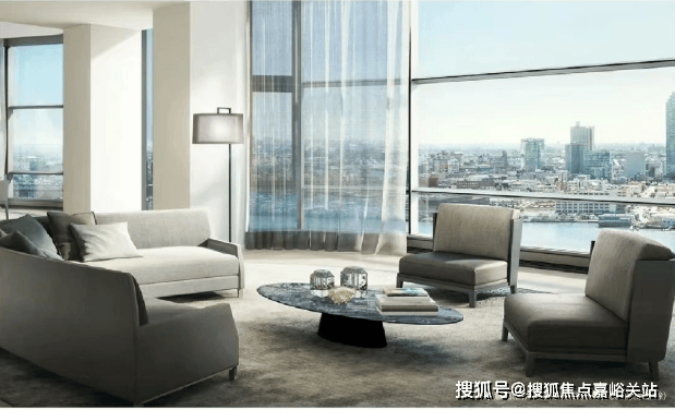 全落地玻璃景观客厅+主次卧贯通景观阳台设计, 高区直面滨江景观,采光视野相当震撼!