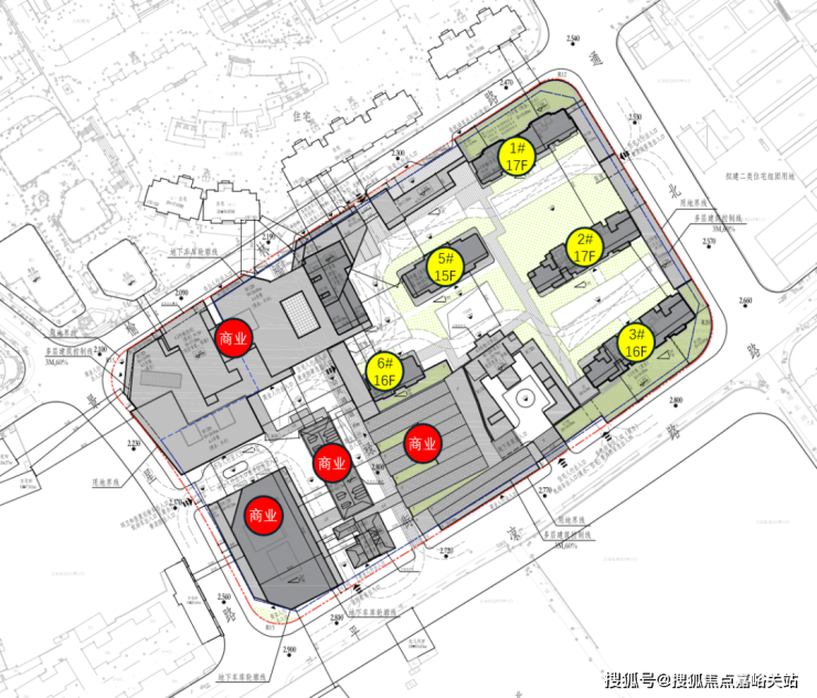 根据设计方案显示,地块拟建5幢15~17F高层住宅 及大规模商业建筑。