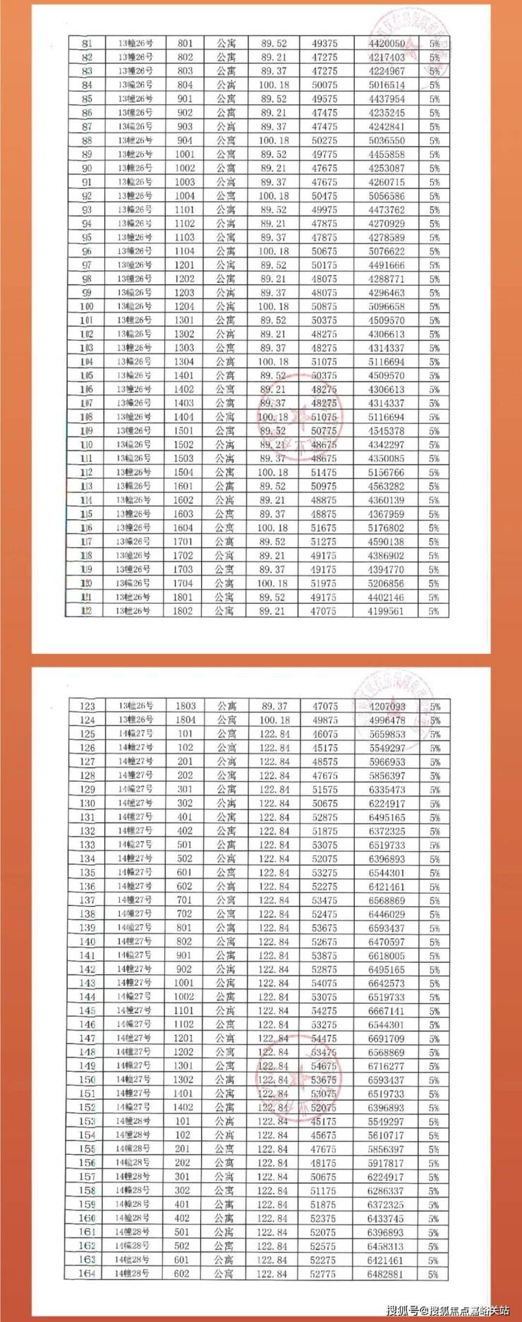 前期一房一价如下