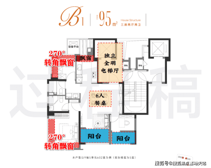 值得一提,当很多豪宅还在用转角飘窗打动客户,项目却在这个500w级新盘上拿出南北 双270度「全景舱户型」。