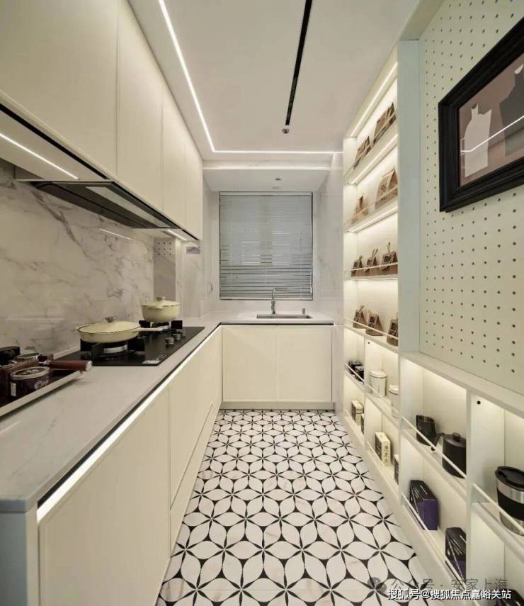 中厨借飘窗拓展了操作台面,可以放得下更多厨房小家电。