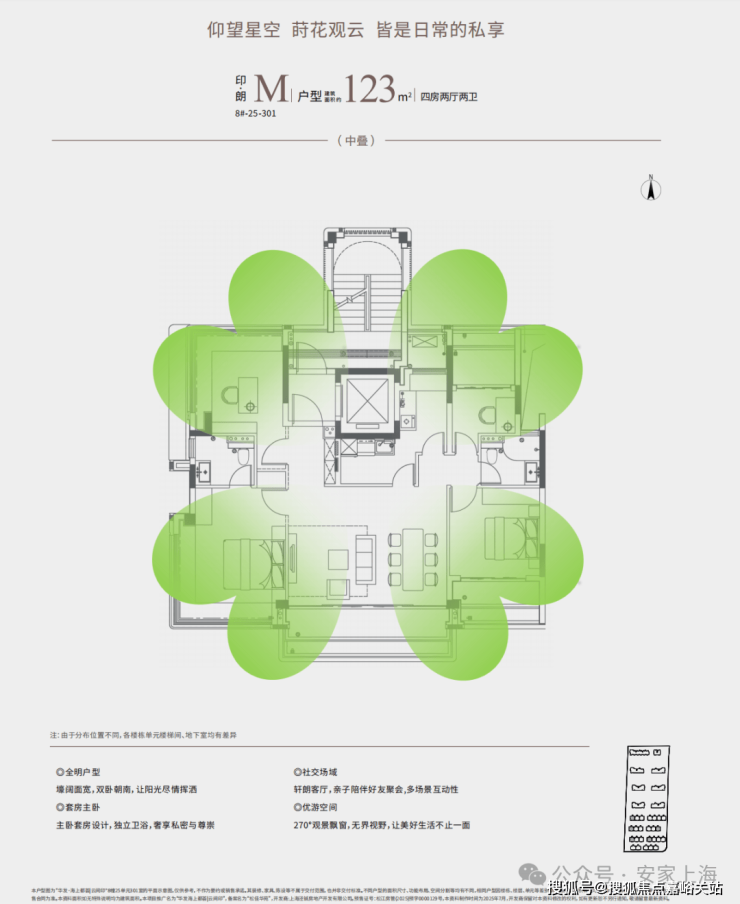 产品是一个新盘立足的根本,这次华发推出的建面约123㎡四房,属实是把改善户型的格局打开了——这个面积段四房不稀奇,但能把独立前厅、全景阳台、花池、四叶草户型这些“豪宅标配”全都塞进去,放眼整个市场都太狠了。