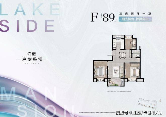 建面约89㎡三房两厅一卫