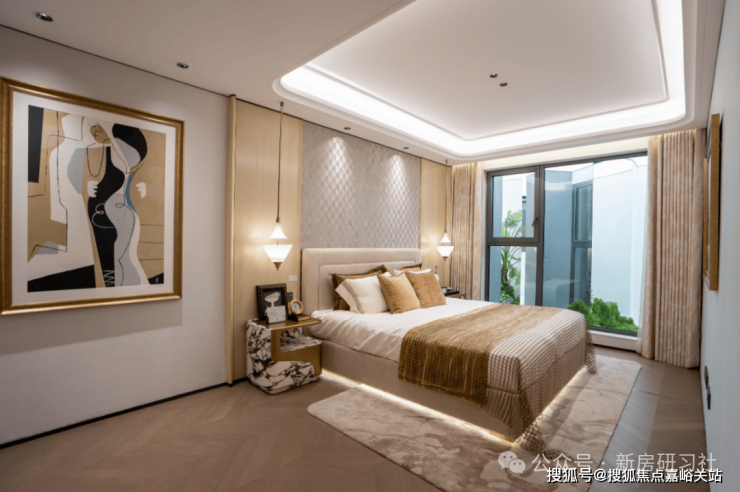 另外,像卧室地板,没有采用常规横拼、竖拼,而是采用复杂的斜拼,大华静安年华售楼处预约电话☎:400-8266-670✅✅只为更美观;吊顶设计同样暗藏匠心,采用多层次曲边造型,为空间增添优雅的线条感。