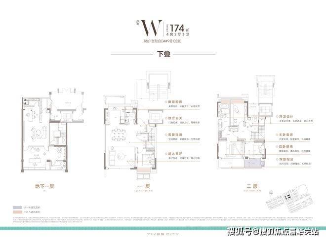 174m²下叠,挑高的宽绰地下室+公共绿地,真正的别墅享受: