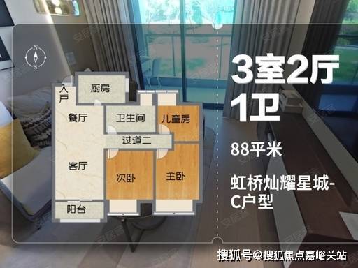 亮点:南北通透,客餐厅连通阳台,三开间朝南,全明无暗室,空间紧凑无浪费。总价 420 万起,首付 127 万起,低门槛入主虹桥核心。