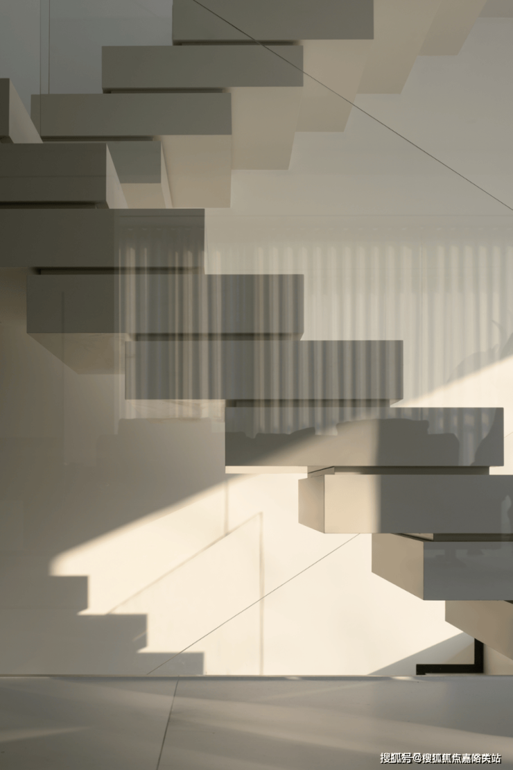 楼梯区完全被几何占据,自然光恰到好处的平衡,进一步呼应着空间的心境,衔接了生活和居所。