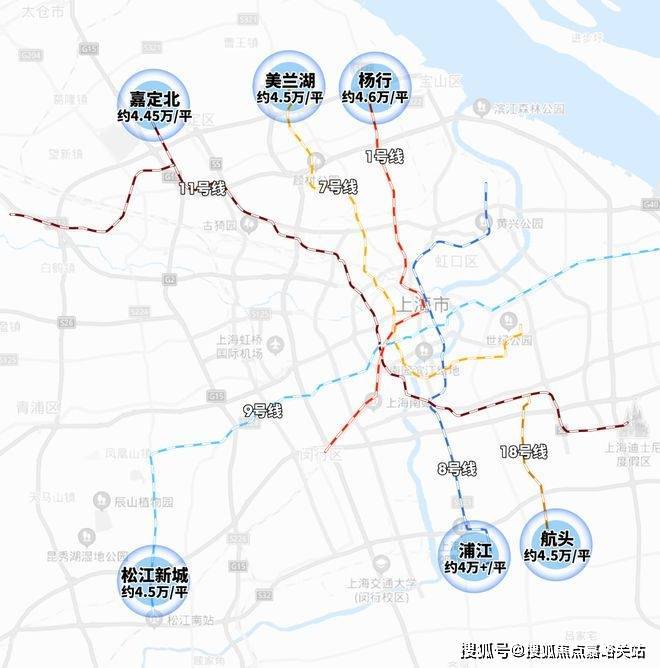 据最新统计,目前上海能通勤传统中央商务区的地铁线, 远郊终点站的新房单价几乎全部超过4万,大多数在4.5万左右!