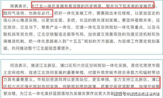 为何会有这样的传闻?不少人推测是此前官微文章《江北新区、浦口区、六合区空间规划一体化推进部署会召开》中有部分信息,让大家有这样的猜想。